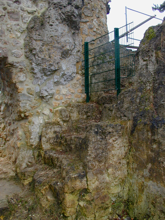 | Der neue Weg vom Wirtshaus nach oben (klick) - auf Initiative des Landrats Armin Nentwig mit Unterstützung der Rohrwerkseigentümerfamilie Aicher, der Betonbaufirma Godelmann, der Sparkasse Amberg-Sulzbach, der Gemeinde Birgland und der Gastwirtsfamilie Raum ausgebaut - war fertiggestellt (Bild unten), der Weg auf der Burg zum Aussichtsplateau hingegen zeitgleich versperrt worden (Bild oben). | |||||||||||||||||||||||||||||||||||||||||||||||||||||||||||||||||||||||||||||||||||||