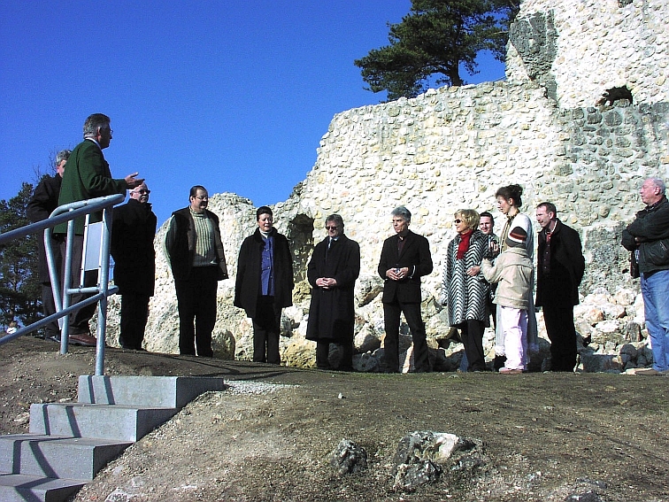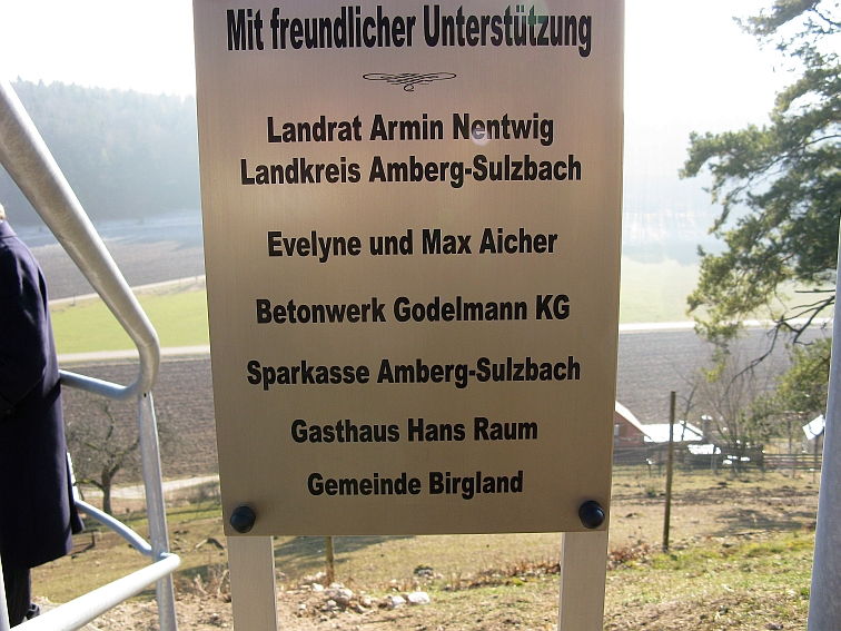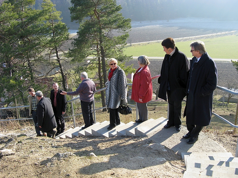 Der neue "Burg-Lichtenegg-Weg" wurde am 13.02.2008 von Landrat Armin Nentwig und Bürgermeister Herbert Steinmetz offiziell seiner Bestimmung übergeben. Als geladene Ehrengäste nahmen teil: Evelyne Aicher, Karl Reyzl, Christian Trösch, 2. Bürgermeister Johann Utz, Ferdinand Leja, des weiteren Traute Mühldorfer, Rolf Wolfermann, Irmgard und Ernst Dörr, Hans und Nina Raum mit Töchterchen Anna-Maria und weitere Personen. Ein OTV-Kamerateam, angeführt von Frau Hollederer sowie Frau Forster vom Neuen Tag/SRZ/AZ berichteten für die Öffentlichkeit. Hans Seitz, der Gründungs- und langjährige Vorsitzende des Fördervereins Hans Seitz (jetzt nicht mehr Mitglied) war verhindert. Nach der Einweihung lud die Wirtsfamilie Hans Raum zu einem Imbiss in ihr Gasthaus ein. |