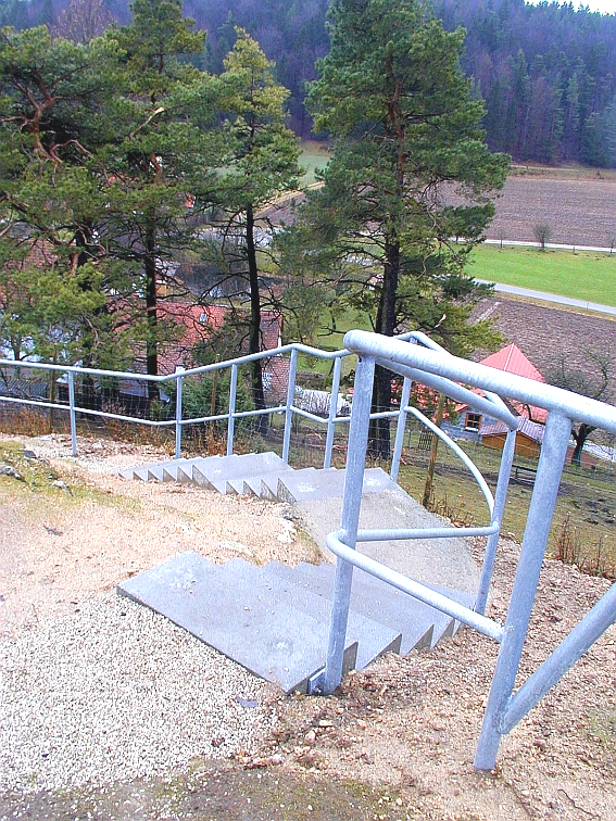 Montag, 10. Dezember 2007 Es ist geschafft! Der Dotzler Siegfried von der MHD verkittet noch die Rohrzusammenstöße. Am vorausgegangenen Freitag betonierten Bürgermeister Herbert Steinmetz, Seitz Hans und der Gemeindebedienstete Kellermann die "Geländerfüße" in den Burgberg. Der Seitz Hans hat am 13.12.2007 die Masten für die Strahler am Burgberg befestigt und ihre Fundamente mit Mörtel abgedichtet. Der "offizielle" Förderverein Burgruine Lichtenegg e.V., dessen Vorstandschaft in Mehrheit den neuen gut abgesicherten Aufstieg bis zuletzt abgelehnt hatte, verweigerte die Mitarbeit. Dennoch wurde hier eindrucksvoll demonstriert, dass ein neidloses Miteinander im wahrsten Sinne des Wortes Berge bezwingen kann! Auch ohne "offiziellen" Förderverein. Ein herzliches Dankeschön und Gott vergelt's umsomehr an alle Befürworter und alle am Wegebau tatsächlich Beteiligten. Wanderer und Spaziergänger bewerten den neuen Weg als herausragenden Pluspunkt für den Birgland-Tourismus. |