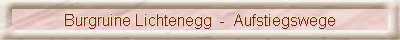 Der neue mit Handlauf gesicherte Weg von der Dorfmitte durch den Wirtsgarten zur Burgruine Viele Besucher Lichteneggs, vor allem etwas ältere, klagten laufend den Wirtsleuten und ebenso dem Gründungs- und langjährigen Fördervereinsvorsitzenden Hans Seitz, dass oben auf der Burgruine eine fast einmalige Aussicht gegeben sei, der Weg dorthin aber schier unüberwindbar für sie wäre. Unfälle bis hin zu Verletzungen mit Knochenbrüchen waren keine Seltenheit. Ein Fördervereinsmitglied aus Amberg bot sich im Frühjahr 2007 als Sponsor für zumindest einen Handlauf an. Beim Förderverein konnte man sich jedoch nicht zu einer Lösung durchringen. In Landrat Armin Nentwig (Landrat des Landkreises Amberg-Sulzbach bis 01.05.2008) fand sich dann - Gott sei's gedankt - im Sommer 2007 ein Förderer und Koordinator der Sponsoren zum neuen Weg, der sogleich im Herbst/Winter 2007 ziemlich schnell angegangen und vollendet wurde und - wie von Nentwig richtig erkannt - nicht nur für den örtlichen Tourismus von großer Bedeutung ist (Ein ausführlicher Bericht zum Werdegang des "Burgberg-Lichtenegg-Weg" befindet sich an anderer Stelle dieser Homepage www.Lichtenegg-Info.de). ... klick Der Burgberg befindet sich - wie auch die Burgruine selbst - in Besitz und Eigentum der Gemeinde Birgland. Die Wirtsfamilie, durch deren Grundstück (Hofraum des Gasthauses und Wirtsgarten) die Trasse führt, wirkte emsig mit am Ausbau des gesicherten und jetzt auch für ältere Leute bequem begehbaren Aufstiegsweges. Besucher Lichteneggs - diese meist identisch mit den Gästen des "Alten Schloss-Wirt Lichtenegg" - können folgedessen seit Anfang 2008 auf mit Handlauf gesichertem Aufstieg durchgehend von der Dorfmitte durch den Wirtsgarten bis hinauf zum Aussichtsplateau des Burgberggipfels gelangen. Es bleiben natürlich zusätzlich Gäste beim Wirtshaus "hängen" und sind voll des Lobes über den neuen Weg! Sogar der Schouster Hans von Guntersrieth. Zwischenzeitlich berichten überregionele Zeitungen und Tourismus-Magazine von der "Top-Verknüpfung Burgruine und Wirtshaus in Lichtenegg". |