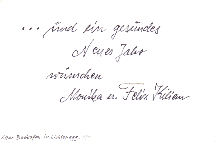 Eigentlich beschreibt er mit Wort und Bild doch recht zutreffend, der Oberstudienrat u. Kunstmaler Gerhard Schneider aus Möhrendorf bei Erlangen. Oder? Von ihm erhielten wir obige "Geißelung", leicht witzig-ironisch Mut machend. Ziemlich entspannt sieht Felix Kilian aus Nürnberg - er gestaltete vor Jahren die Grafik zu den Sammler-Krügen des Förderverein Burgruine Lichtenegg - hingegen die Welt. Sein von ihm gemalter Lichtenegger Backofen" vermittelt trotz oder gerade der Winterlandschaft wegen, Wärme, Ruhe, Innehalten. Vielen Dank den beiden Künstlern! | |